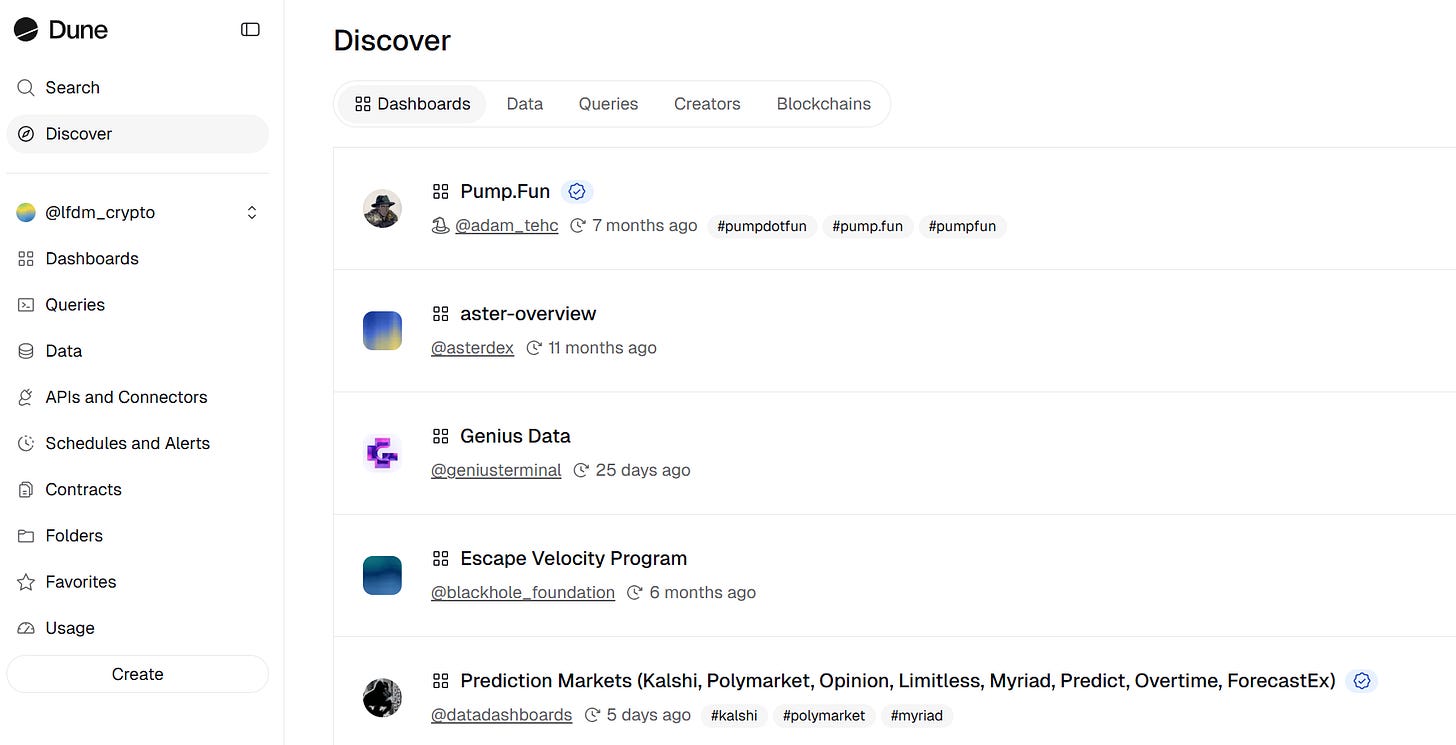 Dune te permite dejar de fiarte del cryptobro de turno que dice “las ballenas están comprando” y verificarlo tú mismo en dos clics. En DeFi, si no miras los datos, estás operando a ciegas.