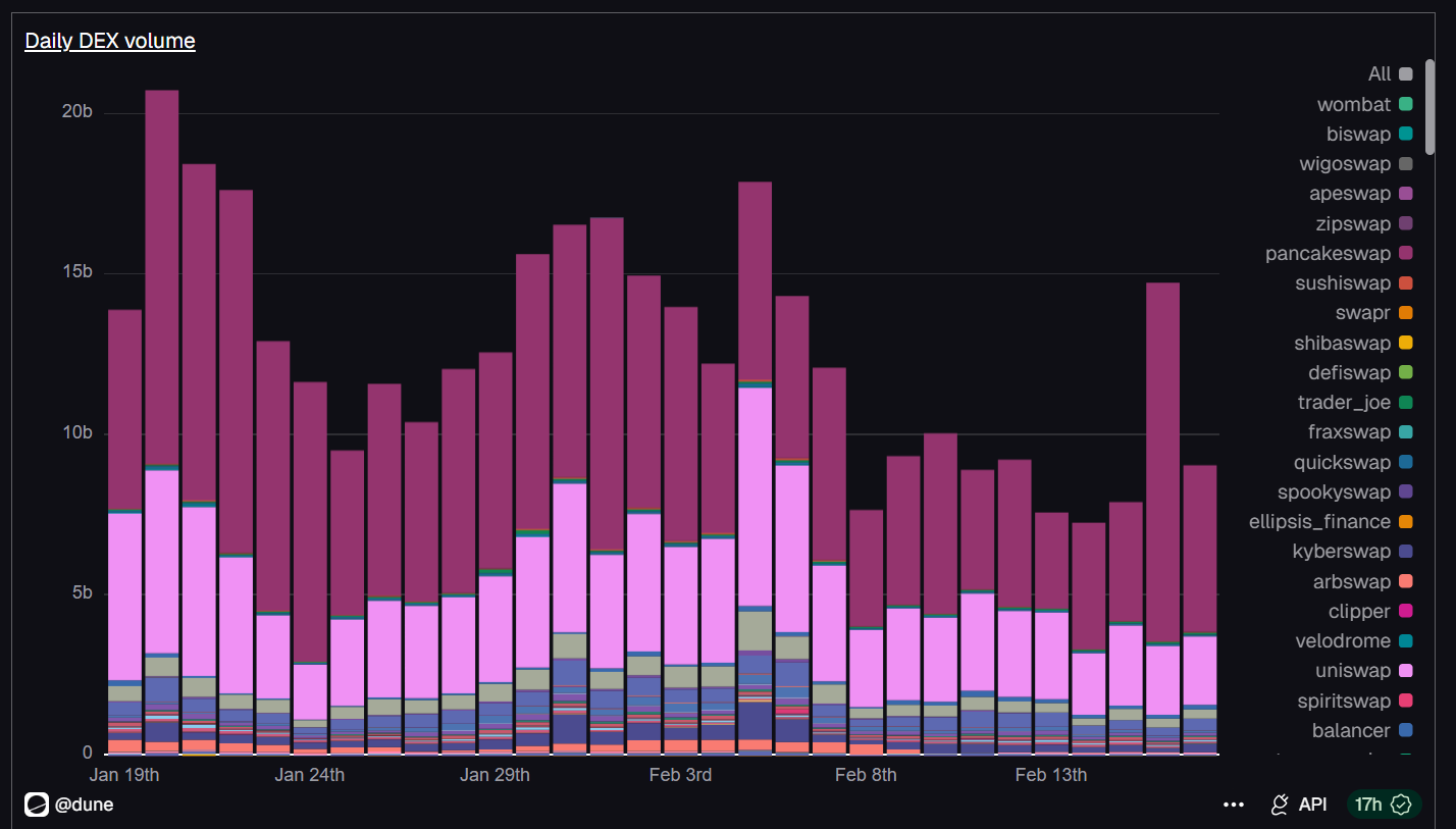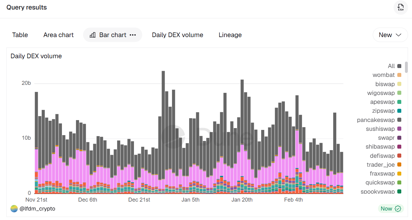 Buscaba la evolución temporal del volumen en los DEX (exchanges descentralizados).